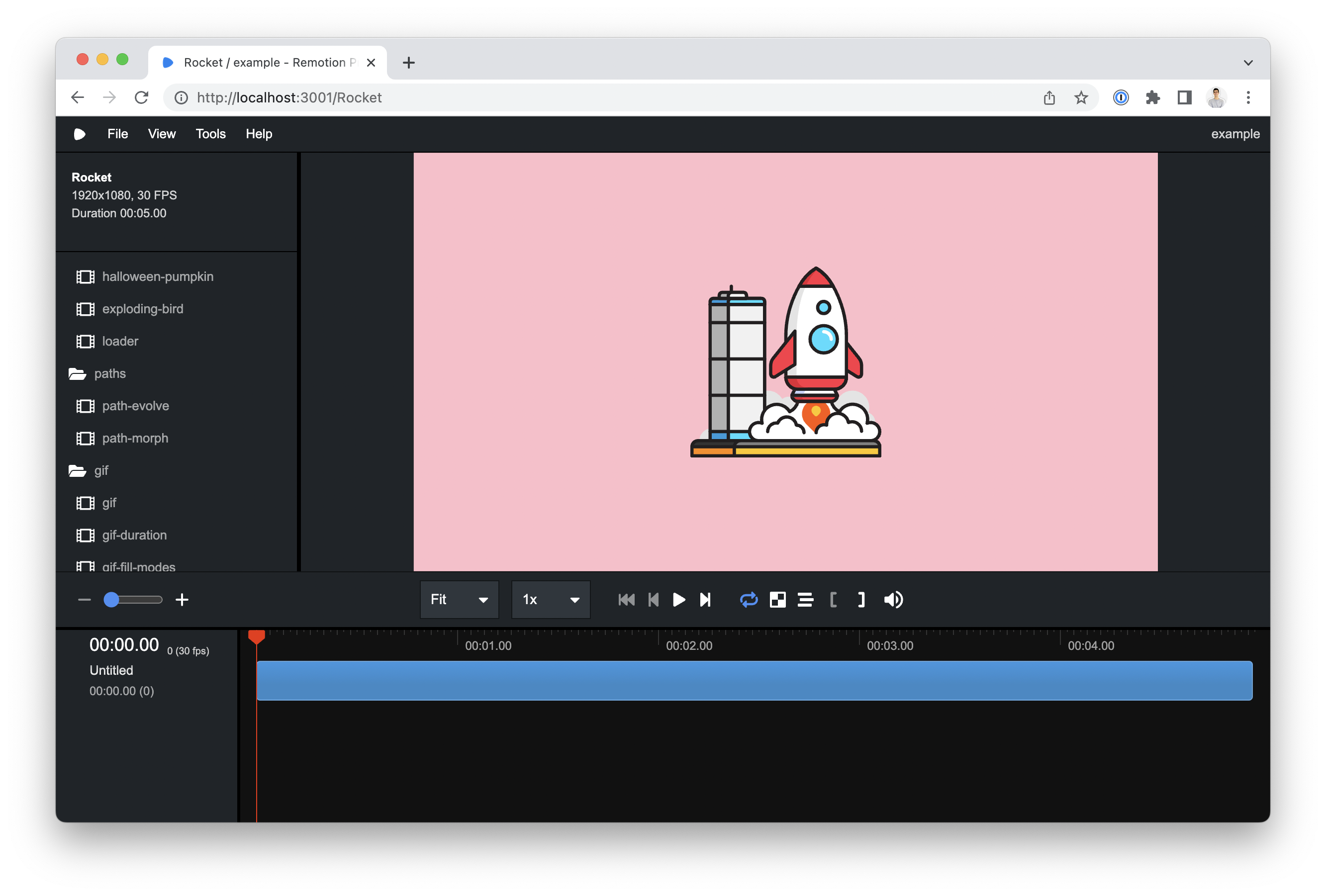 Locate the element that you want to animate and add a style property to it. In this case, let's animate the <g> element that contains the rocket.